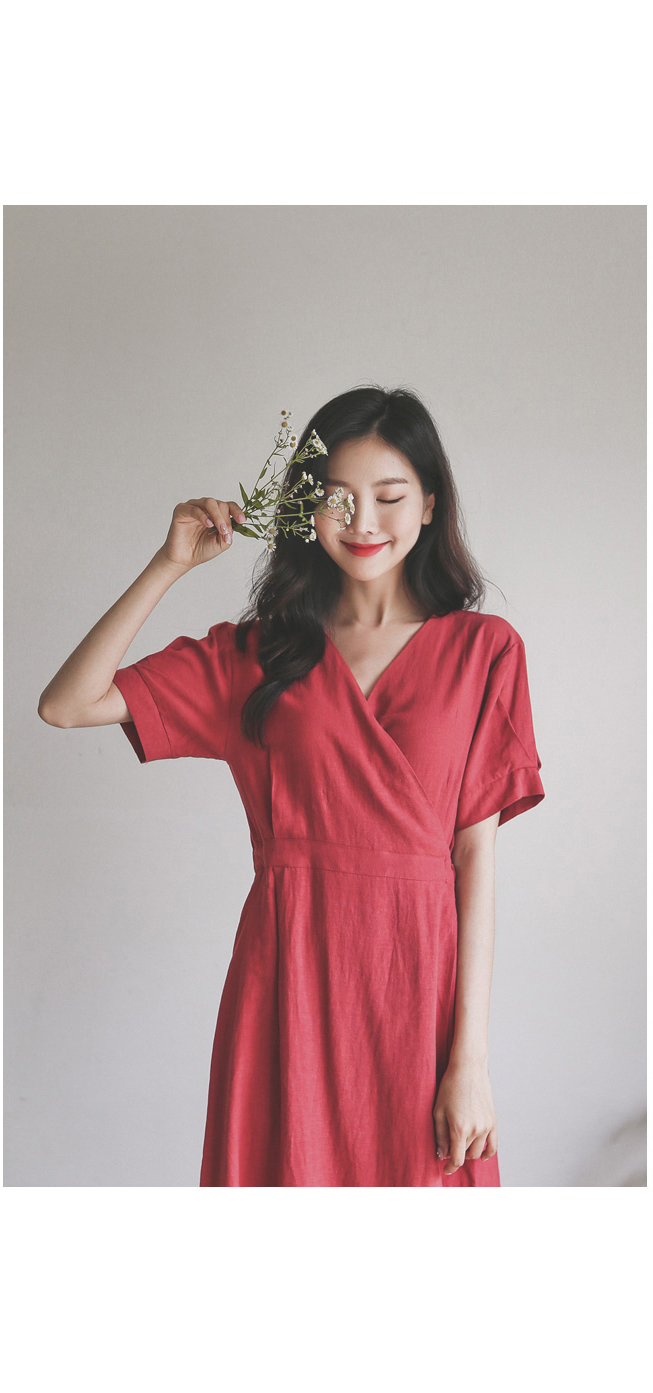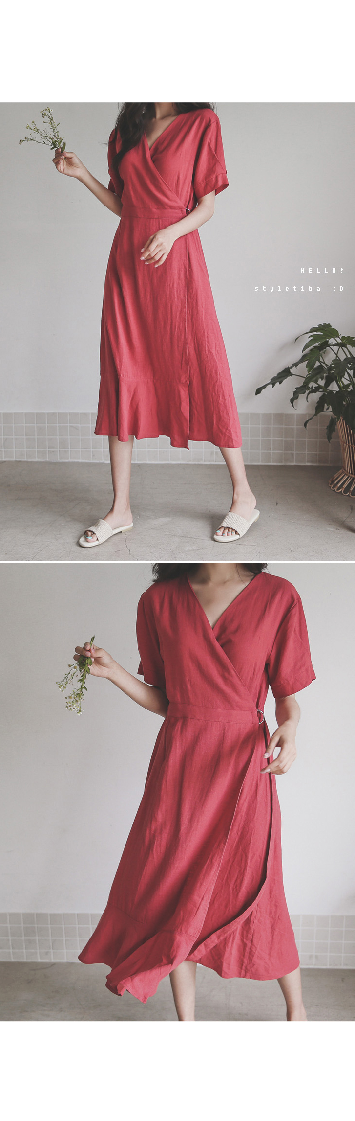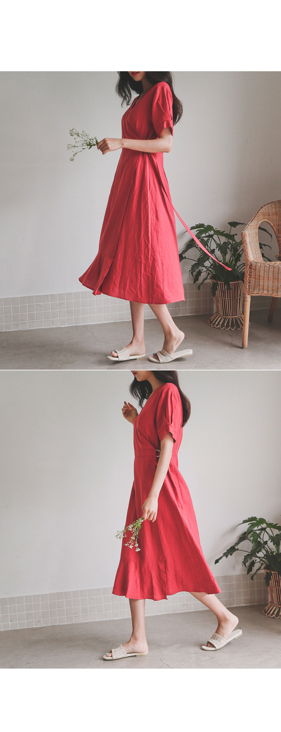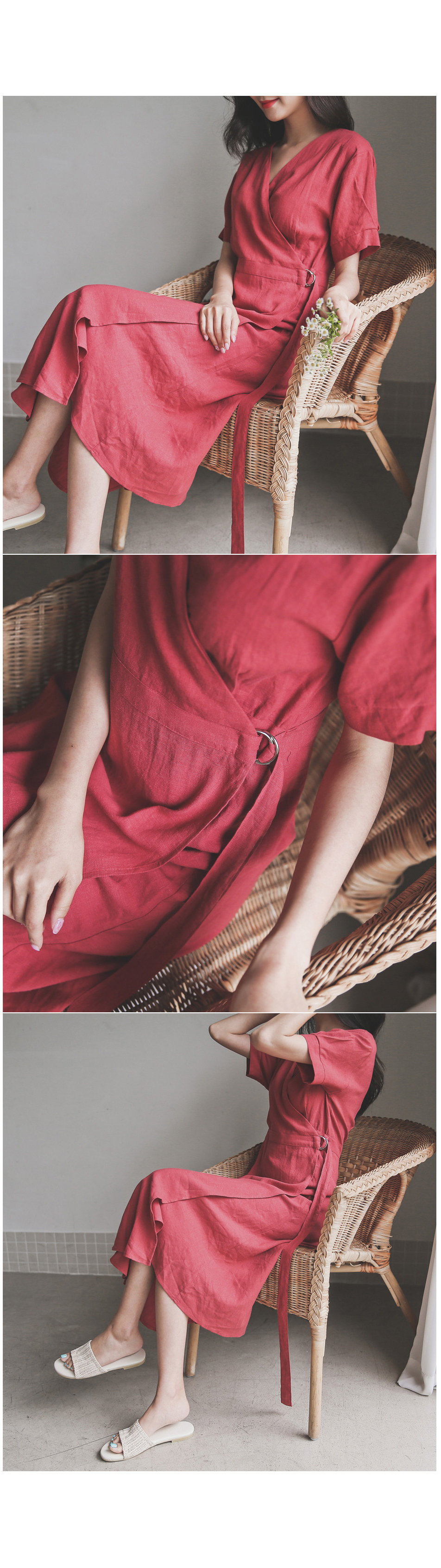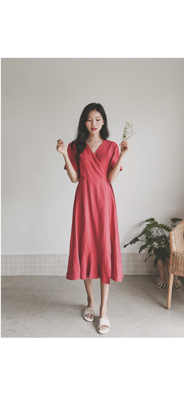 랩 디테일로 슬림한 실루엣을 연출해드리는 린넨 원피스~