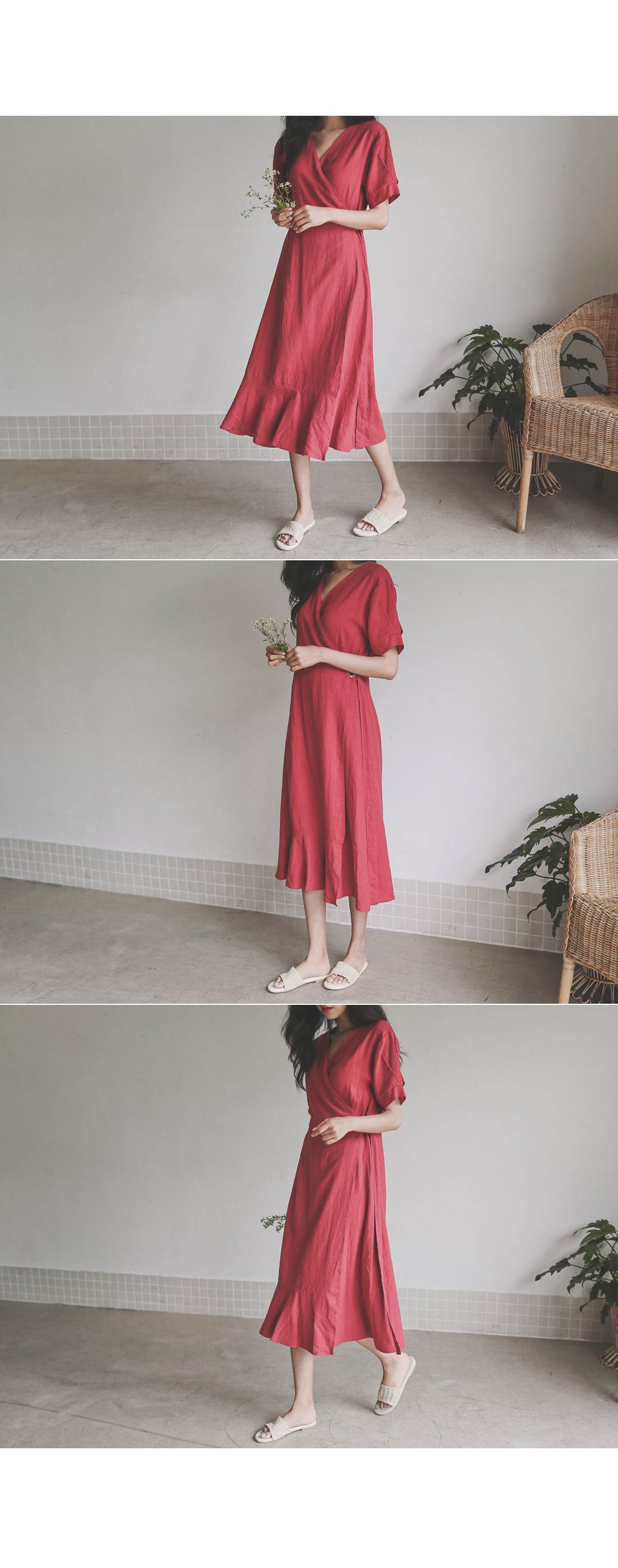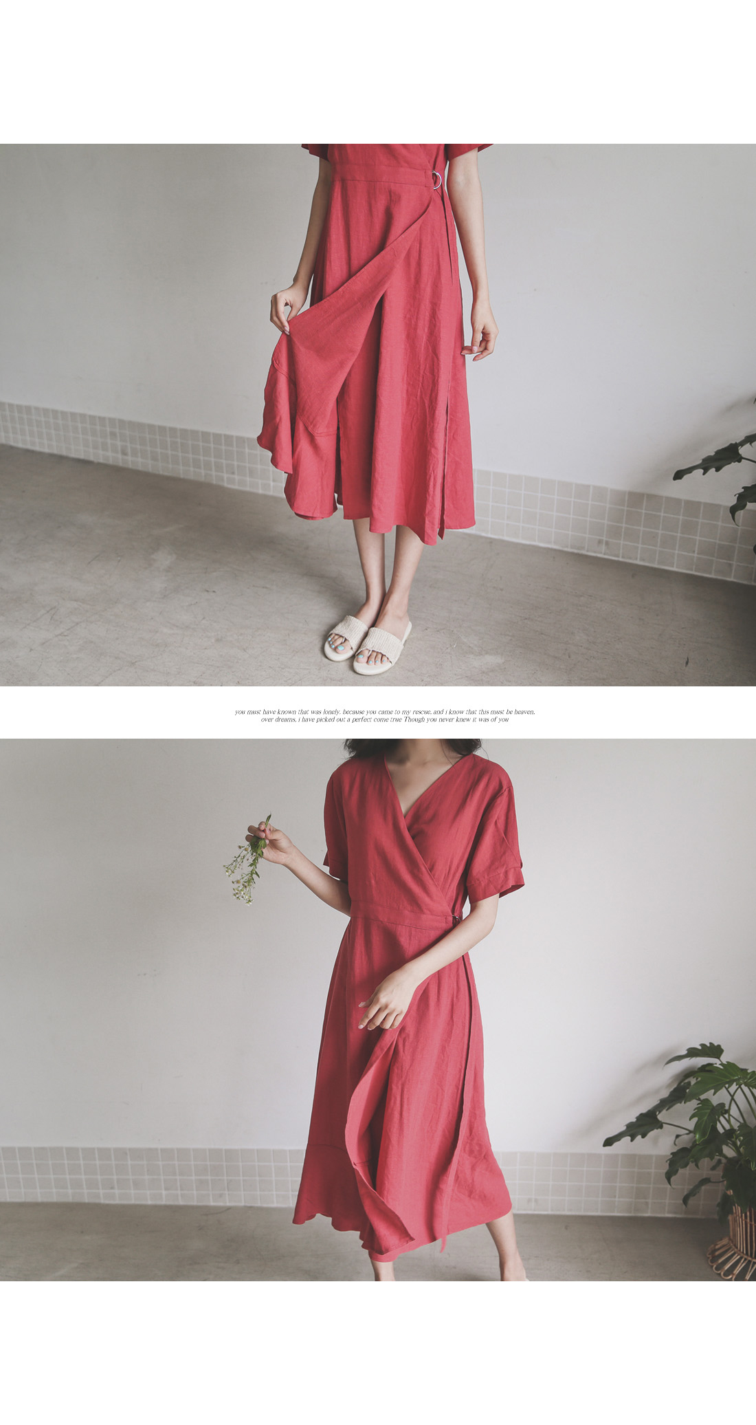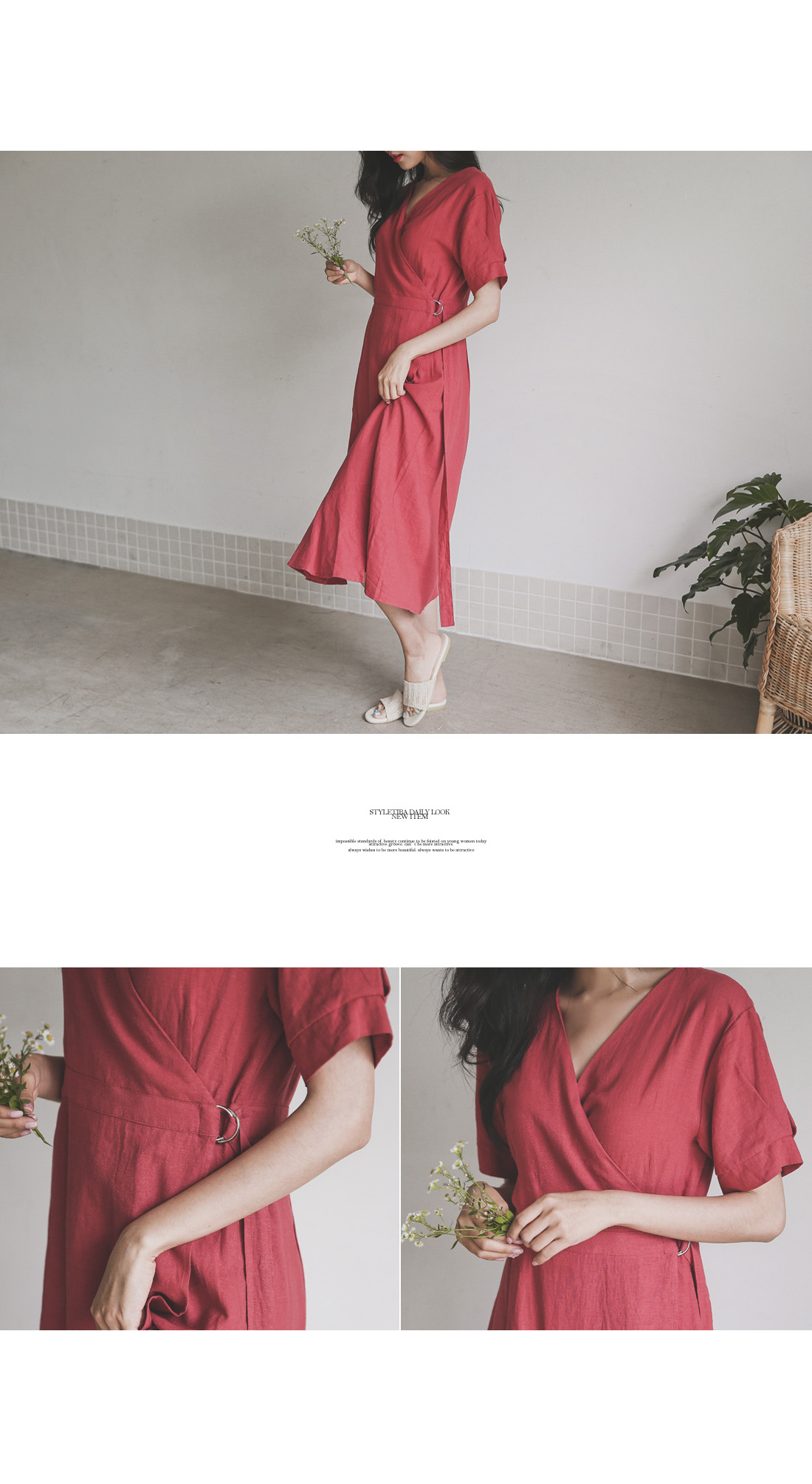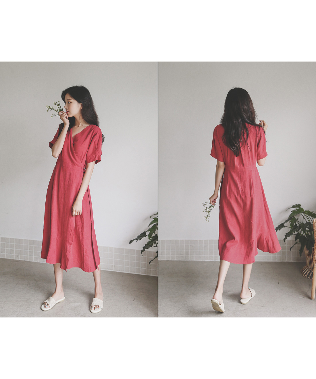 랩 디테일로 슬림한 실루엣을 연출해드리는 린넨 원피스~