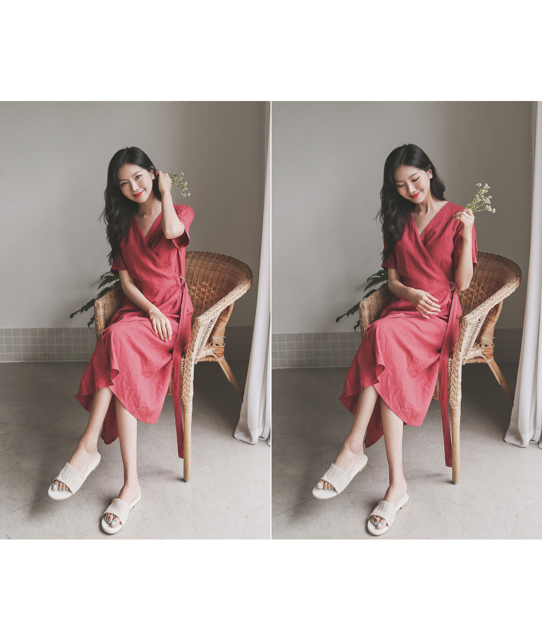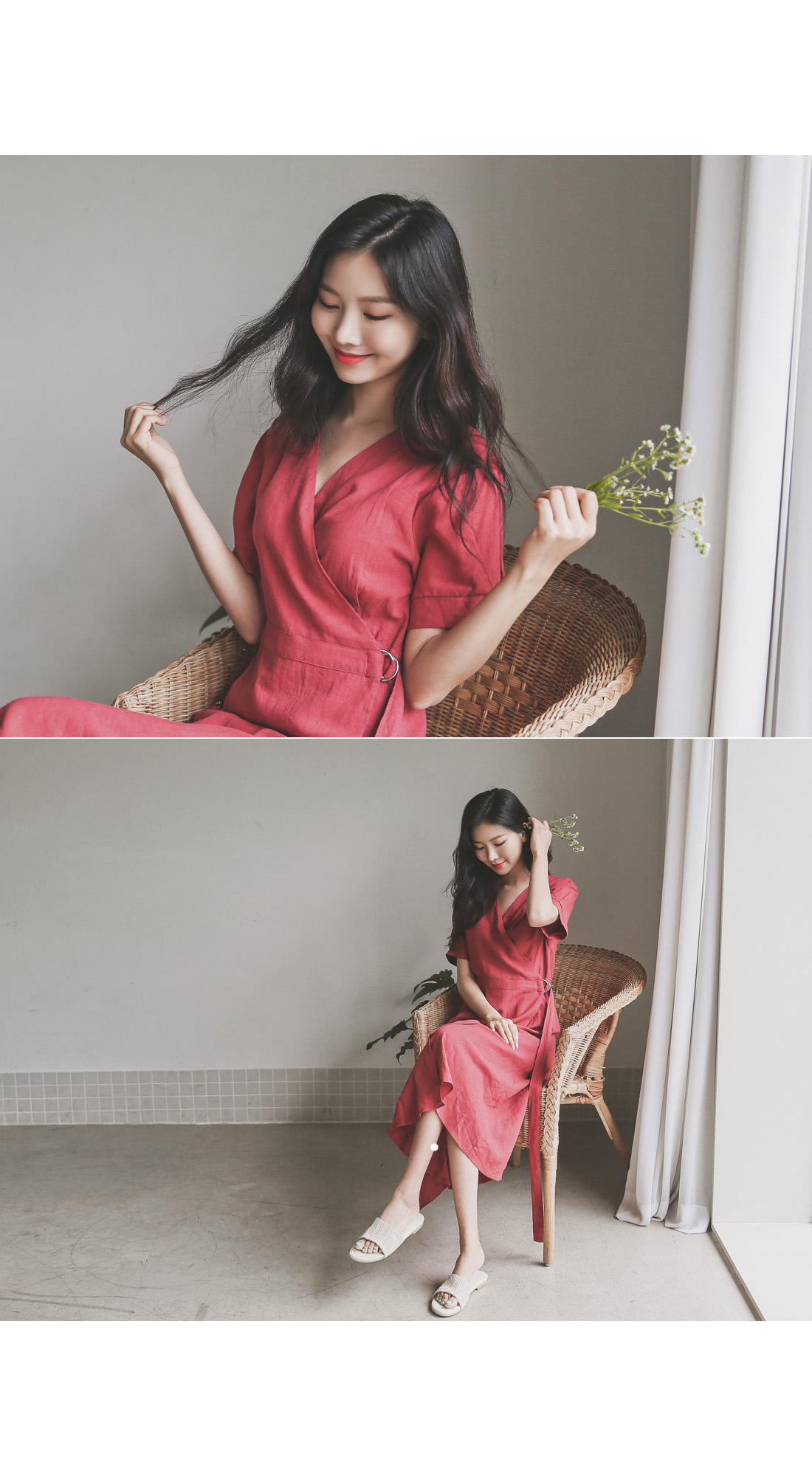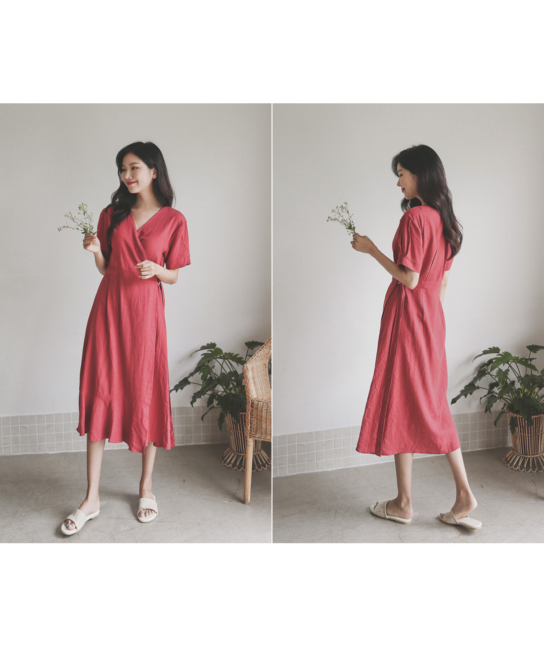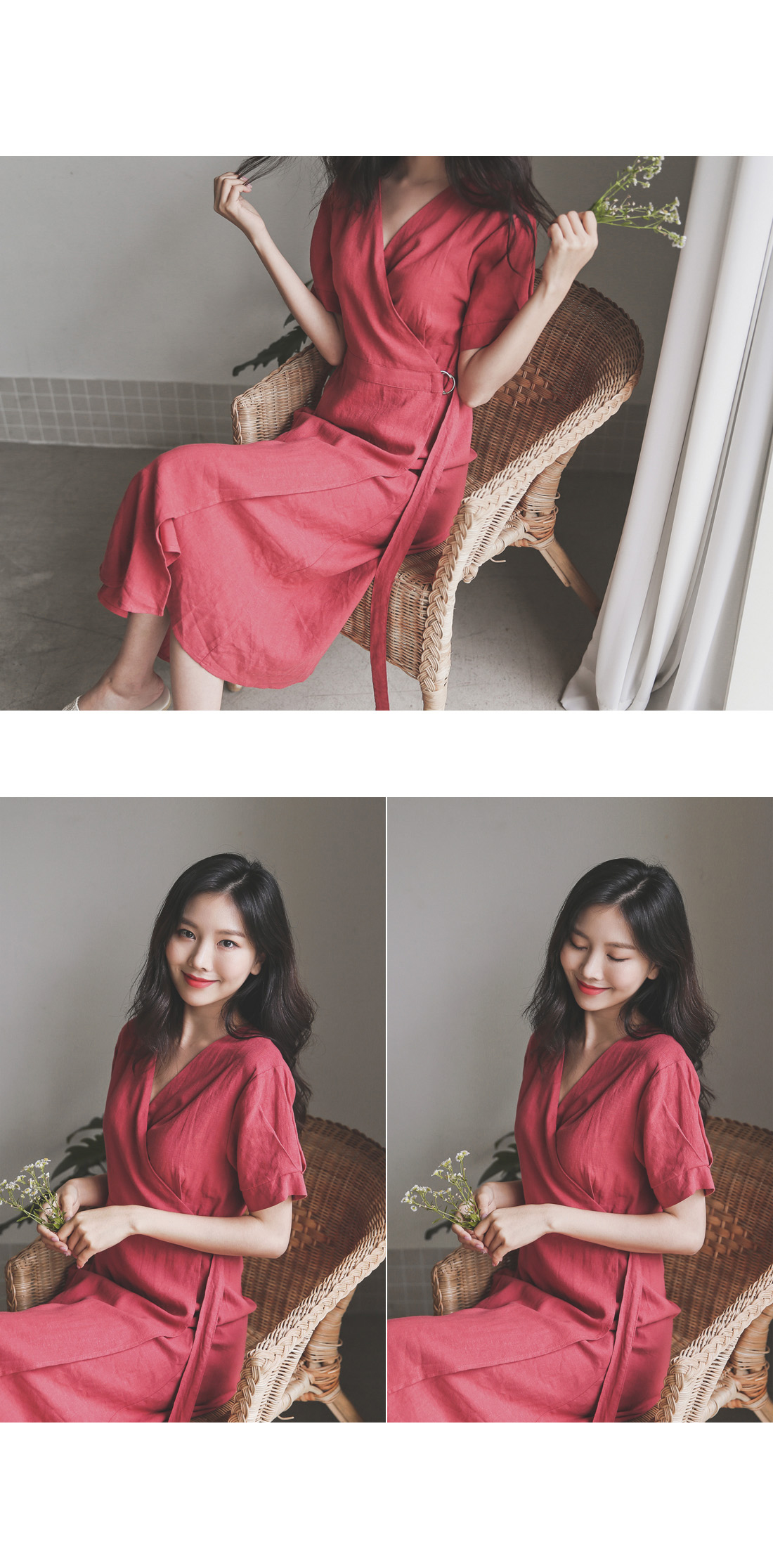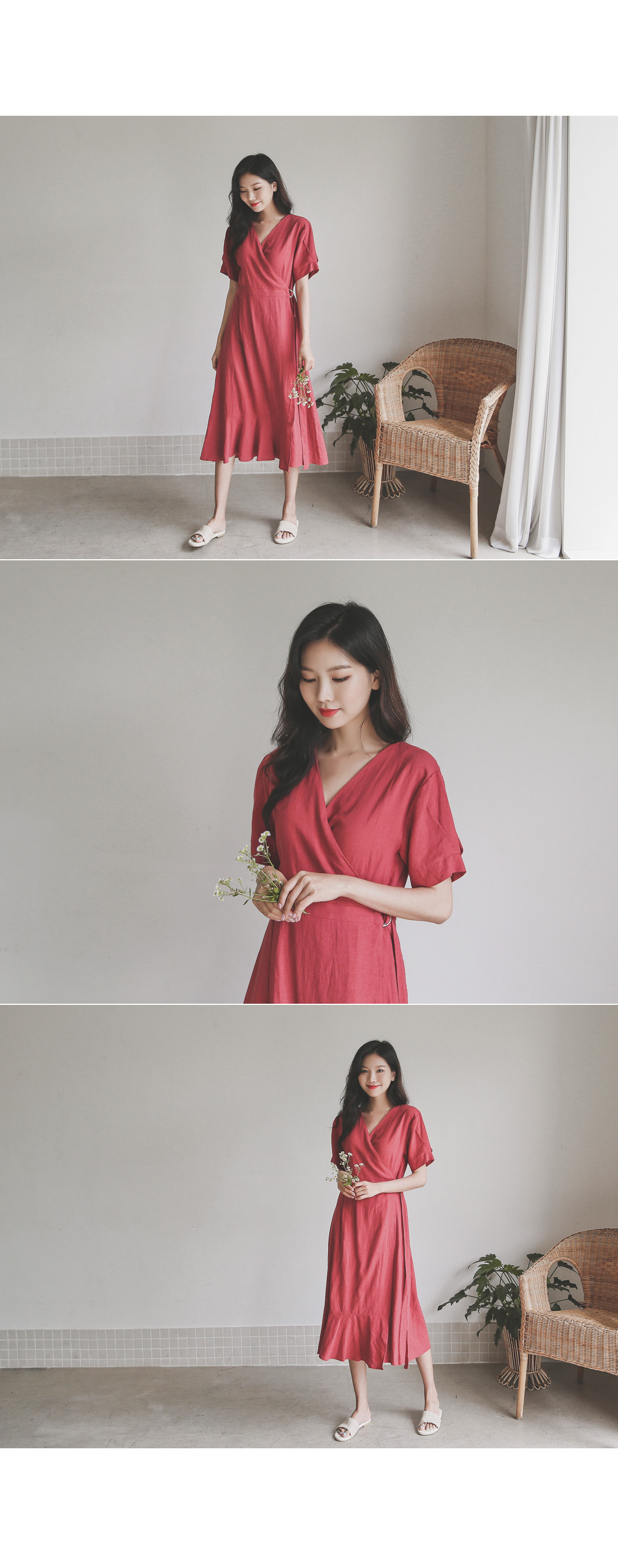 랩 디테일로 슬림한 실루엣을 연출해드리는 린넨 원피스~