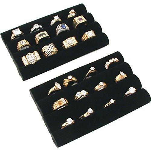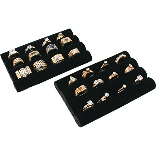 2 Black Velvet Ring Trays Jewelry Pad Showcase Displays 5.5"