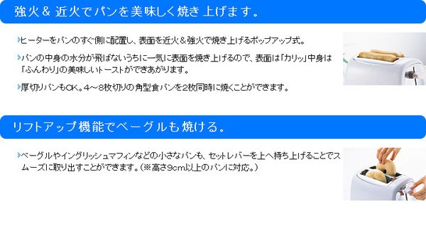 パンの中身の水分が飛ばないうちに一気に表面を焼き上げるので、表面は「カリッ」中身は「ふんわり」の美味しいトーストができあがります。