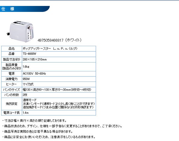 TWINBIRD(ツインバード) ポップアップトースター L.u.P.u.(ルプ) TS-4668W ホワイト