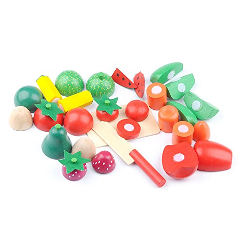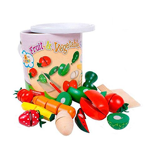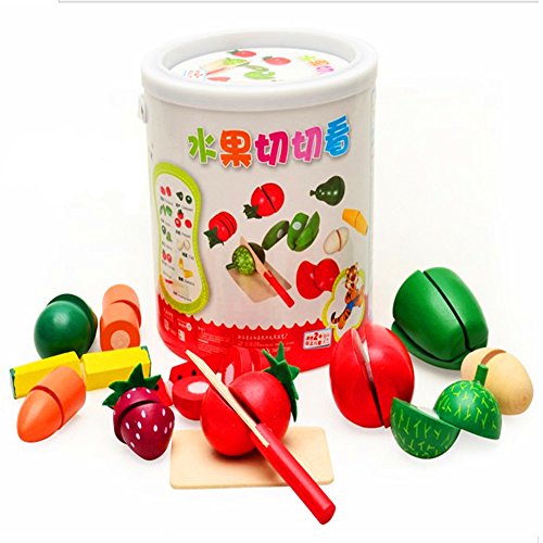 YOUTOP 29PCS WOODEN CUTTING FRUITS AND VEGETABLES TOY PLAYSET PRETEND PLAY FOR KIDS W/ STORAGE
