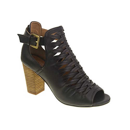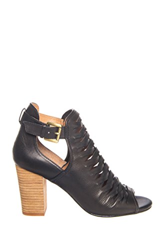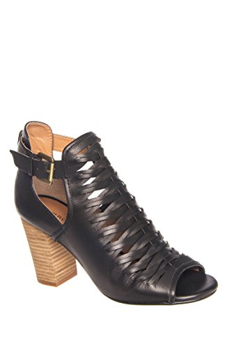 Product DescriptionSupple woven leather defines a trend-right bootie set on a chunky stacked heel.0