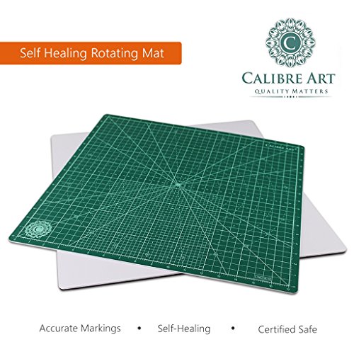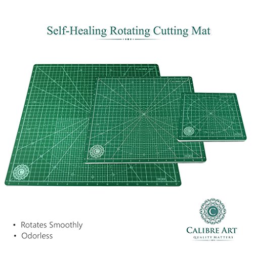 Calibre Art Self Healing Rotating Cutting Mat, Perfect for Quilting & Art Projects, 18x18 (17" grid)