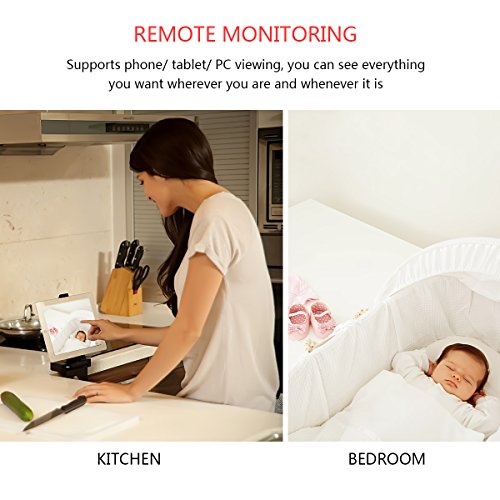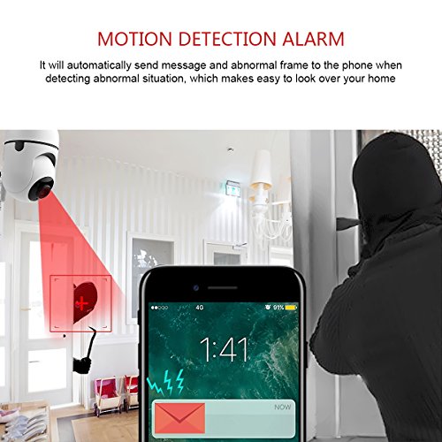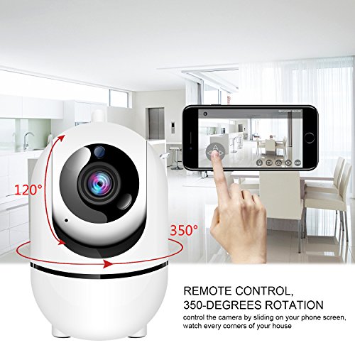 -. Feature : ✔ FULL HD 1080P VIDEO CAMER - Full HD home camera with 1920*1080P resolution at 15fps,the living stream can be accessed via iOS/Android mobile Phone, Windows PC etc. you may use it as a baby monitor to view your baby even you are outside home. / ✔ Digital Remote PAN/TILT/ZOOM - This 1080p wireless IP camera provides wider viewing angle with horizontal 350 degree(pan), vertical 120 degree (tilt) and 4x digital zoom function for every corner of your house is monitored by your smartphone, iphone, ipad and PC. / ✔ TWO-WAY AUDIO& NIGHT VISION - Remotely talk and listen via mobile App even in the dark with the IR LED night vision up to 16 feet.So you can keep in touch with your baby when you miss him and want to see baby crying or smile,more make you feel safer and at ease. This home security camera gives you fantastic night experience even in pitch dark and full protection to see the whole room at night. It also can be used for shops, meeting room, pets,nanny, elder monitor. / ✔ MOTION DETECTION - This wireless ip camera will send alarm information to your phone, Email or FTP and keep live videos on TF card when there are alarms. / ✔ 2.4G WiFi WIRELESS CONNECTION - Easy set up,plug&play.Quick WiFi setup via mobile App on iPhone or Android smartphone. Wireless security camera supports remote access via mobile App anywhere and anytime. With Micro SD card slot (max 64GB supported), the videos can be saved and playbacked on Windows and Mac laptop without taking it out of camera. Support Windows and Mac 7/24 videorecording, if camera be stolen, you can check your local computer to see what happened.(SD card not included.)