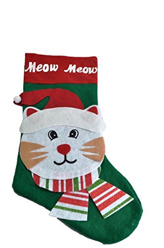 -. Binding : Misc. -. Brand : Greenbrier -. Feature : Soft felt Christmas stocking / Measures 16" in length / Cute pet Applique on the front of stocking / Either says "Woof Woof" or "Meow Meow" along top of stocking; depending on which animal you choose -. Label : Greenbrier International -. Manufacturer : Greenbrier International -. PackageQuantity : 1 -. ProductGroup : Pet Products -. ProductTypeName : PET_SUPPLIES -. Publisher : Greenbrier International -. Studio : Greenbrier International -. Title : Christmas Pet Stocking for a Dog or Cat - Your Choice