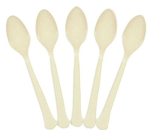 Heavy Duty Party Spoon Tableware, Vanilla Crème, Plastic , Full Size, Pack of 20