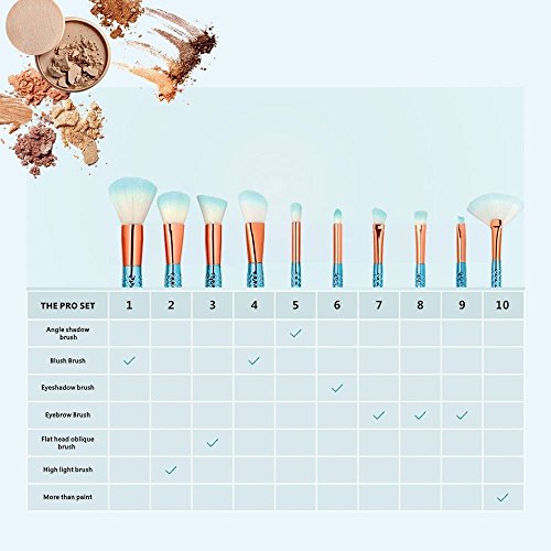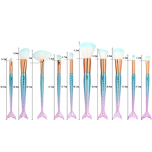 - 11pcs multi-function mermaid makeup brushes sets cover your multiple needs of application, such as foundations, contouring the forehead and cheekbones, concealer, eye shadow, sculpting eyebrows, blusher. Multi-sized brushes will meet your variety needs of make up