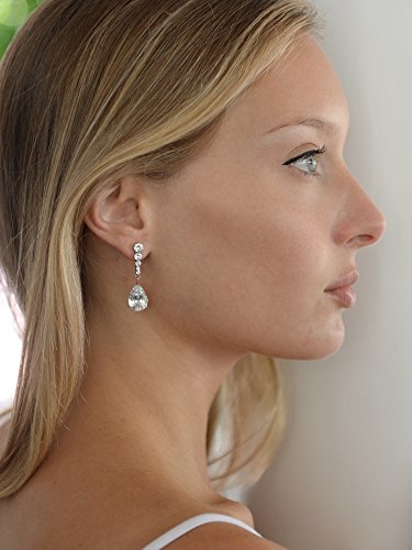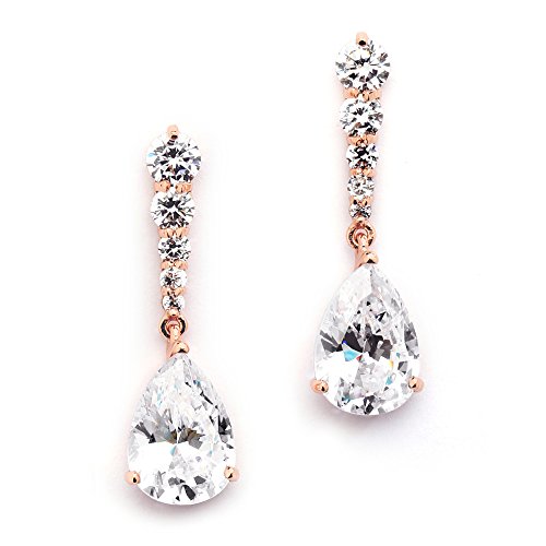 These glamorous Rose Gold CZ earrings by Mariell have brilliant pear-shaped teardrops suspended from a gorgeous tapered row of round CZ's. At 1 3/8" h, these dazzling pink gold dangles are just the perfect size for day-into-night comfort with endless sparkle that will guarantee an unforgettable grand entrance. Whether you're a bride, bridesmaid, or mother of the bride, you'll "wow" the crowd in these top-selling stunners. At an irresistible price, these brilliant cz drop earrings are also a fabulous way to top your prom, homecoming and holiday dresses. We have completely fallen for the simple elegance and endless sparkle of these Blush-gold stunners with a sizzling dose of bling in just the perfect size silhouette. Meticulously crafted with the finest quality AAAAA Zirconium gems plated in Genuine 14KT Rose Gold, these Mariell customer favorites will become your next go-to earrings for every special occasion. We promise you'll adore these Cubic Zirconia teardrop beauties or your money-back. Treat yourself or someone you love to some seriously gorgeous sparkle. As always, enjoy Mariell's 100% Risk Free Purchase and LIFETIME GUARANTEE.Feature