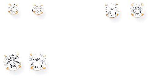 ICECARATS DESIGNER JEWELRY 14K YELLOW GOLD 3 PAIR SET CUBIC ZIRCONIA CZ POST STUD EARRINGS