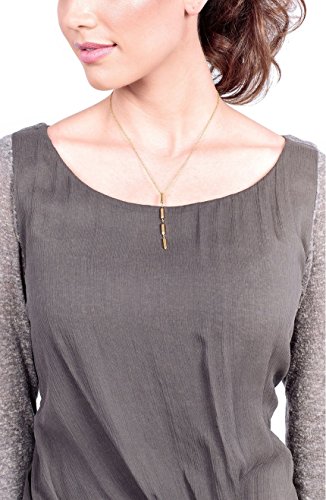 Sleek metallic bars anchor the slimming Y-profile of a shiny, ultra-versatile necklace