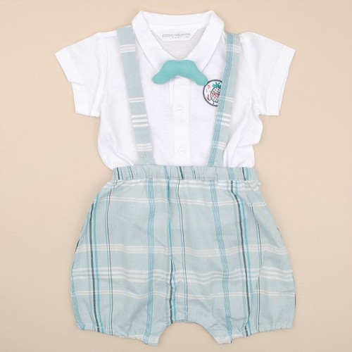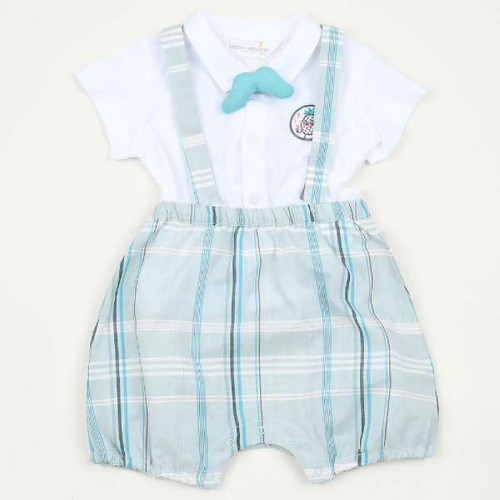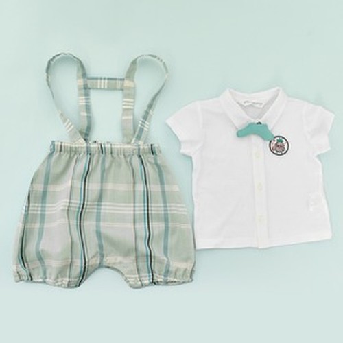 멜빵바지의 체크가 한껏 세련된 느낌입니다.