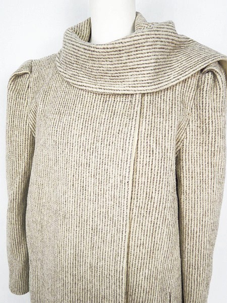 Ladies ブランド- カラーオフホワイト・茶 メール便不可 コンディション★★★ 素材ウール80%・ナイロン20% 表記サイズ記載なし スタッフコメント裏地付き。 実寸サイズ 着丈 106 cm 身幅 53 cm 肩幅 37 cm 袖丈 59 cm ※ウエスト・ヒップ以外は平置き採寸