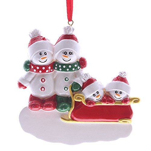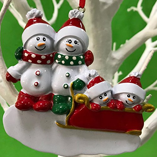 Snowman Lovely Baby Family of 4 Personalize Christmas Ornament, Free Pen with Gifts Box Provided