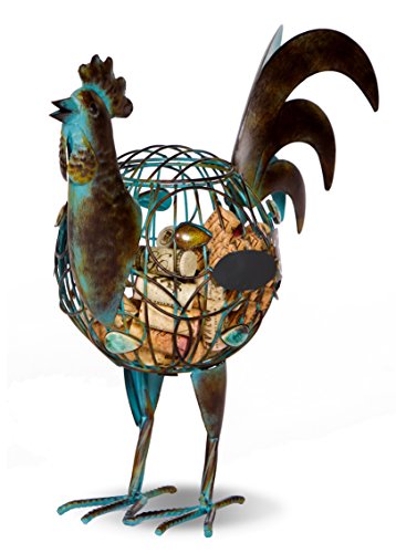 [Product Information]- Our Picnic Plus whimsical Rooster Cork Cage Caddy is great for collecting and saving your wine bottle corks. Makes a fun conversation piece and looks great on a bar or mantel. Made with durable steel and has a patina finish and chalkboard plate. Our cork collector holds up to 65 corks. Top panel opens for access. Dimensions 11"w x 7"d x 14"h