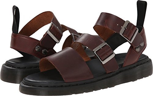 Studio : Dr. Martens Publisher : Dr. Martens Binding : Apparel Product Description Upgrade your casual, warm-weather style with the Dr. Martens Gryphon Strap Sandal. Part of the Dr. Martens Shore Collection, this men's clog boasts a smooth leather upper with buckle straps at the instep and ankle for a secure fit. The lightly contoured, cushioned footbed is topped in leather for moisture-managing comfort. Assembed using flexible, durable Goodyear welt construction, the Dr. Martens Gryphon Strap Sandal sits atop a slip-resistant, air-cushioned PVC outsole for dependable traction. 0