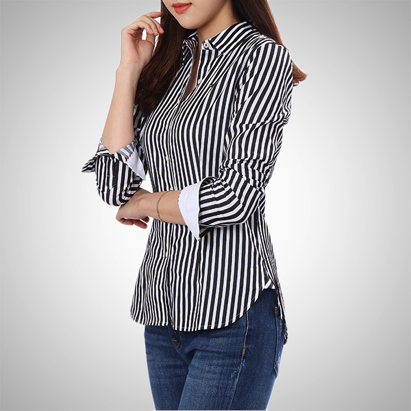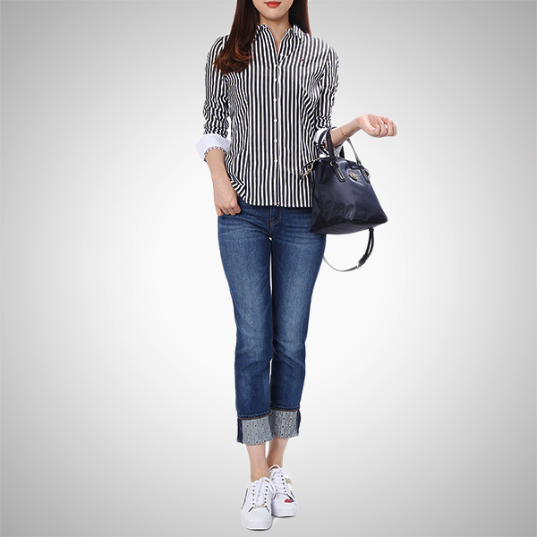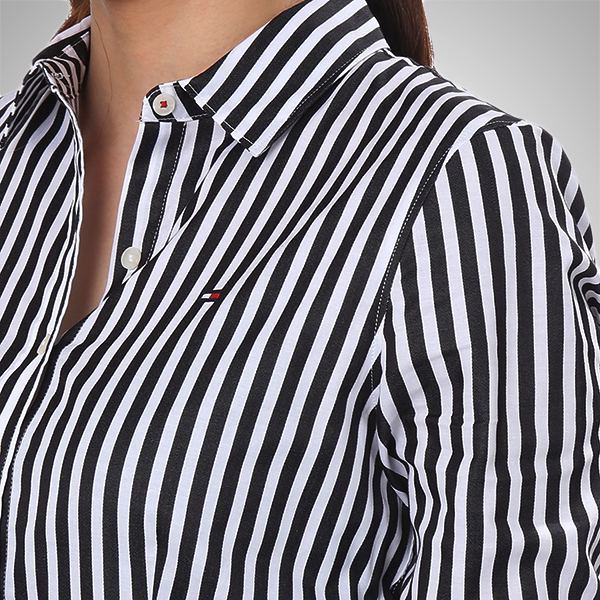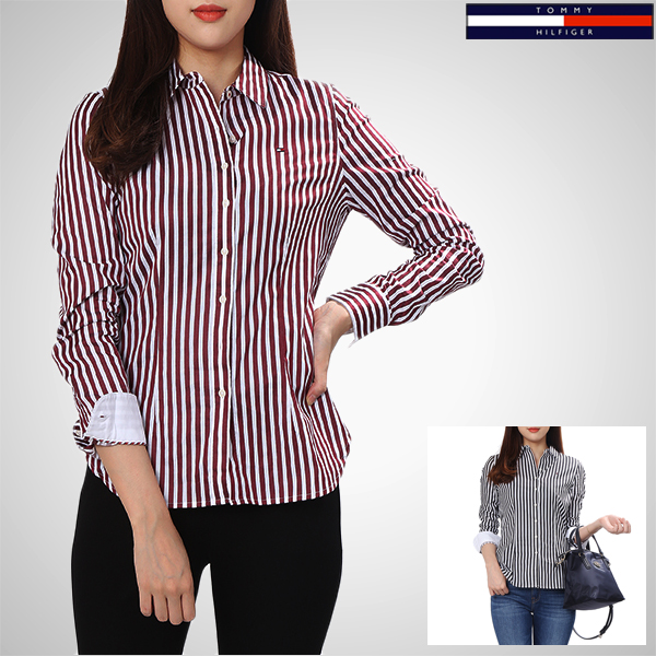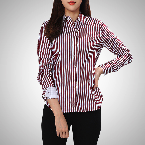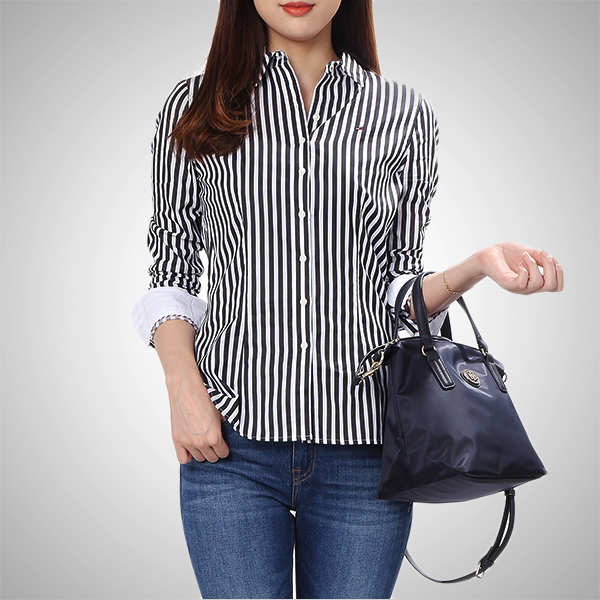 전면 스트라이프 패턴이 돋보이는 셔츠입니다.