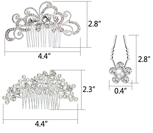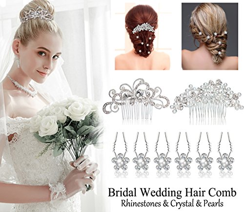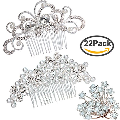 Pack of 2 Bridal Wedding Hair Comb + 20pcs Crystal Pearls Hair Pins Women Hair Side Combs Bridal Head Pin Headpiece