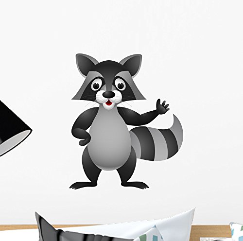 Raccoon Cartoon Hand Waving Wall Mural by Wallmonkeys Peel and Stick Graphic (12 in H x 10 in W) WM31250