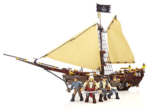 In a time when pirates ruled the seas, the gunboat was celebrated for its quickness and agility. But no target can be too fast for a true assassin! Build the Gunboat Takeover by Mega Bloks Assassins Creed and prepare for a historic showdown between the Pirates and their enemies in the Spanish fleet. Featuring highly detailed, super-poseable Assassin Edward and enemy sailor micro action figures, this set includes authentic interchangeable weapons and accessories, allowing for highly customized missions and display. Hoist the warships real fabric sails and grapple over the edge, setting the scene for Edwards single-handed takeover of this formidable vessel.