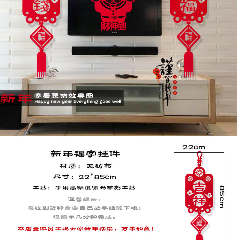 󰄬2018狗年新年立体福字门贴春节窗花过年装饰用品新年创意福字挂件
