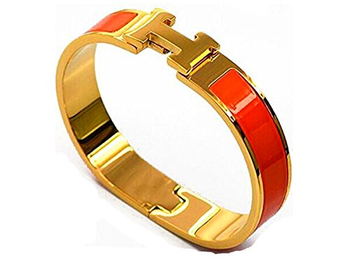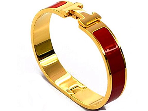 Buckle Bangle Bracelet 12MM Color Gold/Orange Red