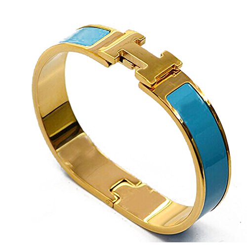 Buckle Bangle Bracelet 12MM Color Gold/Sky Blue