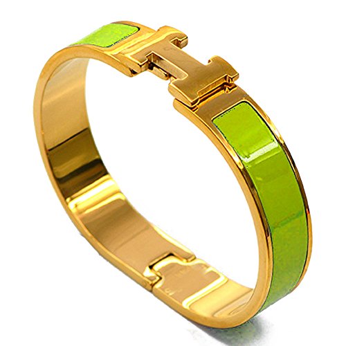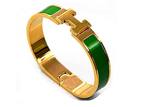 Buckle Bangle Bracelet 12MM Color Gold/Green