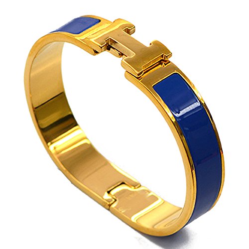 Buckle Bangle Bracelet 12MM Color Gold/Dark Blue