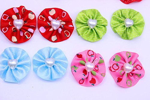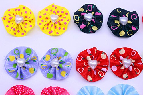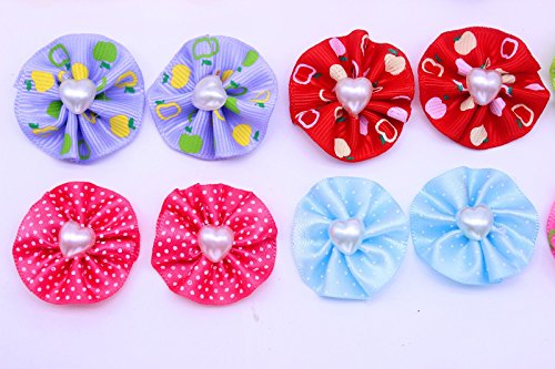 -. Feature : handmade pet hair bows (each package will include a pet tag for free gift) / 1.2inches in diameter backside rubber bands, Elegant Style / material: Pearls ,Ribbon, Stain, rubber bands 60pcs/30pairis in pack / Color : Mix color, same as picture shows , each color will be in pairs / 100% new condition and top quality.