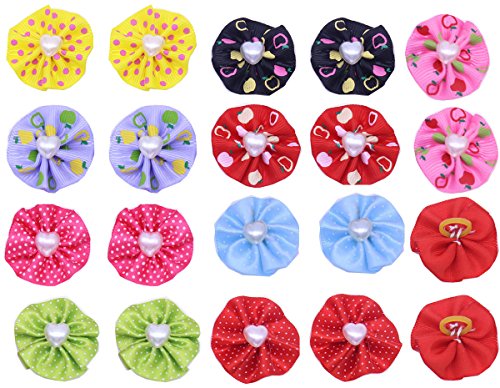 -. Title : Yagopet 60pcs/30pairs Dog Hair Bows With Rubber Bands Round Bows with Love Pearls Center Dog Topknot Dog Bows Pet Dog Grooming Bows Pet Supplies Dog Hair Accessories