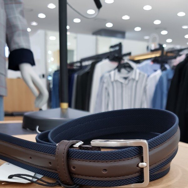 가죽배색이 들어가있는 캐주얼 벨트에요 청바지나 면바지에 코디하시면 좋아요 보통34사이즈까지 착용 가능하게 나온 상품이에요