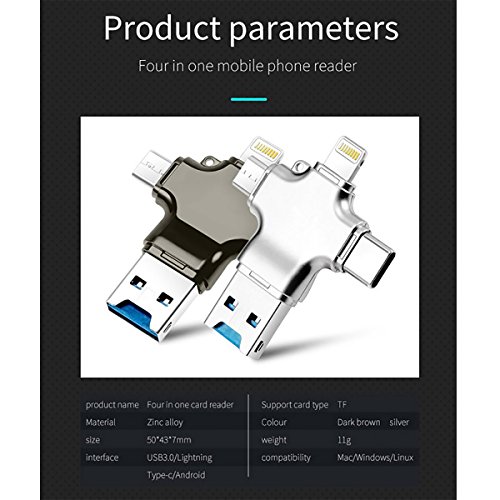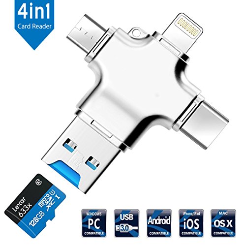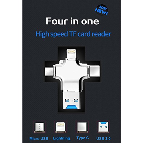 *4 in 1 card reader with Lightning/ Type-C/ Micro USB and USB 3.0 connector for iPhone/iPad/Samsung/Android smart phones/Mac/PC.