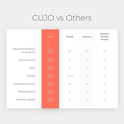 INTERNET SECURITY FIREWALL. CUJO will secure all devices connecting to your WiFi router. CUJO detects and blocks malicious sites, viruses, and hacks. Think of it like antivirus for your entire network.