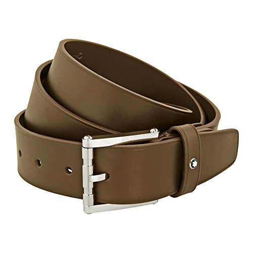 -. Title : Montblanc Brown Leather Belt with Palladium-coated Square Buckle 111104