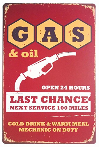 ERLOOD Gas Oil Open 24 Hours Vintage Tin Sign Wall Decor 20 X 30 Cm