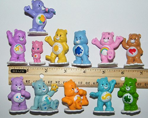 -. Feature : This set of 12 very nicely detailed mini figures are from the popular Care Bear TV and Movie series! / These fun figures are about 1 to 1.5 inches tall and are great for any Care Bear fan! / Please Note: these are bulk toys that are shipped in plastic as pictured with no box. / This fun set includes many of the most popular bears including the blue Bed Time Bear, the pink Cheer Bear and many more! / These are for children and adults 4 and older.