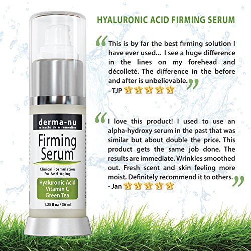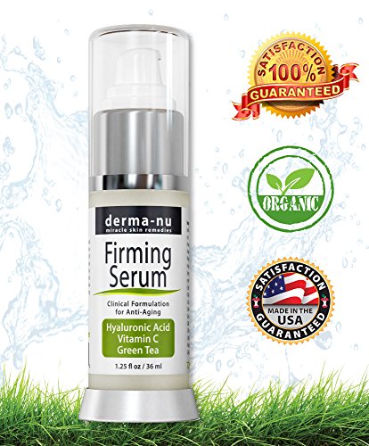 -. Binding : Misc. -. Brand : Derma-nu Miracle Skin Remedies -. EAN : 0787421301854 -. Feature : THIS HYALURONIC ACID SERUM is Guaranteed to Firm & Tone the Skin. It's Unique Formulation Will Draw Moisture From The Environment and Onto the Surface of Your Skin Creating a Dewy & Youthful Glow. This Hyaluronic Acid Serum is Proven to Reduce Skin's Fine Lines and Wrinkles. / FIRM & HYDRATE THE SKIN With This HA Serum. Hyaluronic Acid Hold up to 1000 Times Its weight In Water and Will Effectively Plump the Skin. This Formula Has Been Infused with Vitamin C + Vitamin E + Green Tea Extract For Their Superior Anti Aging Benefits. / ACTIVATES COLLAGEN PRODUCTION & PENETRATES DEEPLY Creating a Fresher, Younger, Firmer & Brighter Complexion. The Best and Most Potent Hyaluronic Acid on the Market. / ADVANCED CLINICAL PROVEN FORMULATION is the Best Hyaluronic Acid Serum for Anti Aging and is Proven to Plump the Skin & Fill in Fine Lines and Wrinkles. Instantly Feel It Firming and Toning Your Face! It Is Truly a Facelift in a Bottle! / PARABEN FREE - NON-COMEDOGENIC - ORGANIC - MADE IN THE USA - NOT TESTED ON ANIMALS - 100% SATISFACTION GUARANTEE -. Label : Derma-nu Miracle Skin Remedies -. Manufacturer : Derma-nu Miracle Skin Remedies -. NumberOfItems : 100 -. PackageQuantity : 1 -. ProductGroup : Beauty -. ProductTypeName : BEAUTY -. Publisher : Derma-nu Miracle Skin Remedies -. Studio : Derma-nu Miracle Skin Remedies -. Title : Hyaluronic Acid Serum By Derma-nu - Organic Firming Anti Aging Facial Treatments for Wrinkles - Pure Hyaluronic Acid and Vitamin C - 1.25oz -. UPC : 787421301854