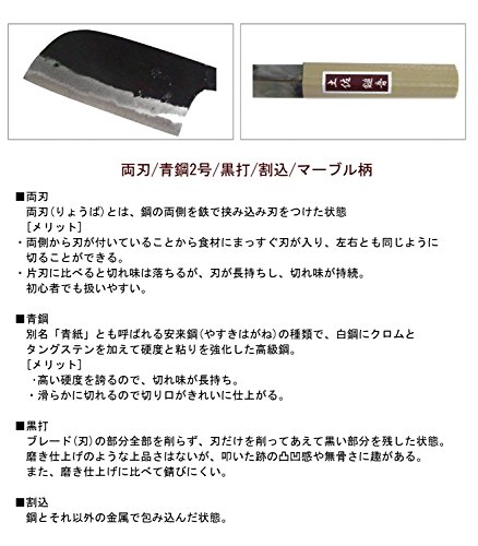 ●일본도의 작도기술로부터 태어난 비전의 자유 단조(모든 것이 경험에 의한 형만들기)를 이어받으면서(도),서민의 생활에 첨가한다「쓰기에 편리 함」를 염려한 토사타 칼날