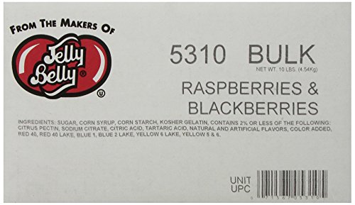 -. Binding : Grocery -. Brand : Jelly Belly -. EAN : 0071567053105 -. Feature : One 10-pound bag of raspberry and blackberry candies / European-styled candies with a soft gel center and high fruit intensity / Coated with crunchy candy seeds / Made in the U.S. / Candy seeds coating fruity gels in a delightful blend of crunchy and chewy.á One of the most popular jelly belly confections! -. Label : Jelly Belly -. Manufacturer : Jelly Belly -. NumberOfItems : 1 -. PackageQuantity : 1 -. ProductGroup : Grocery -. ProductTypeName : GROCERY -. Publisher : Jelly Belly -. ReleaseDate : 2006-09-12 -. Size : 160 Ounces -. Studio : Jelly Belly -. Title : Jelly Belly Raspberries and Blackberries, 10-Pound Bag -. UPC : 071567053105