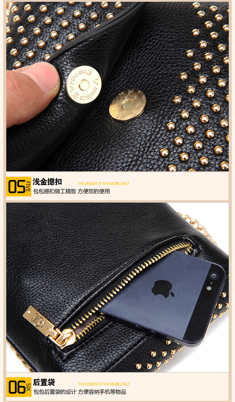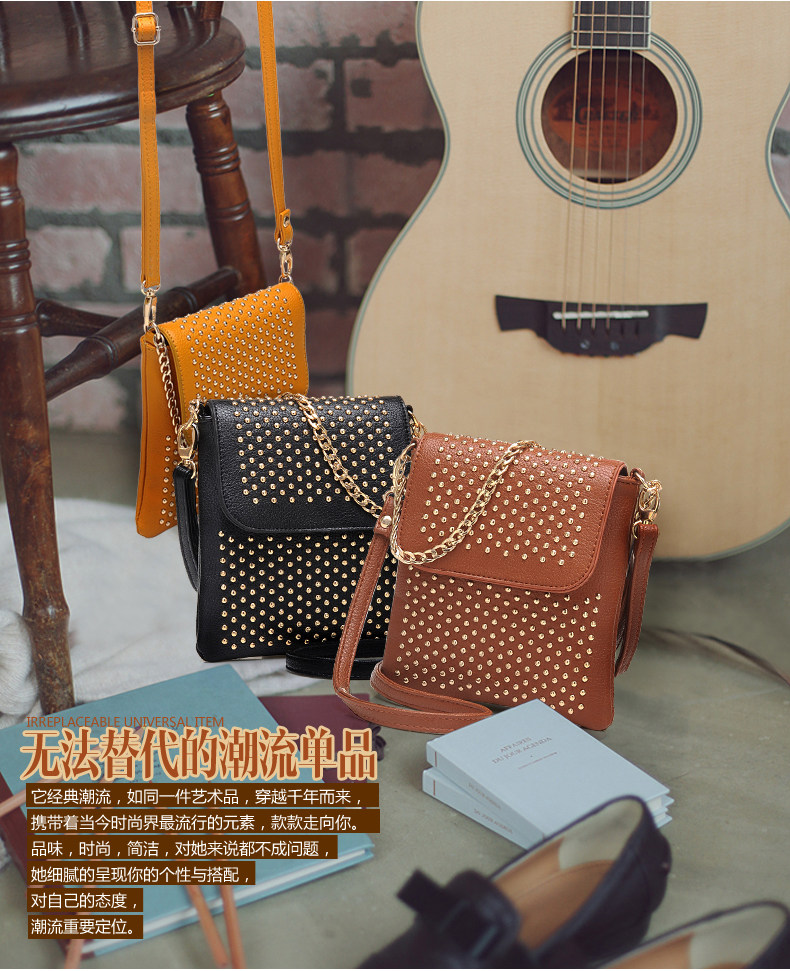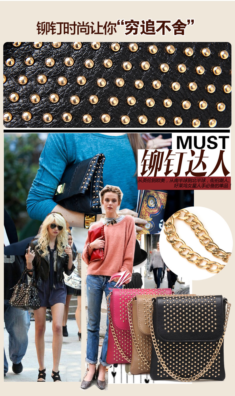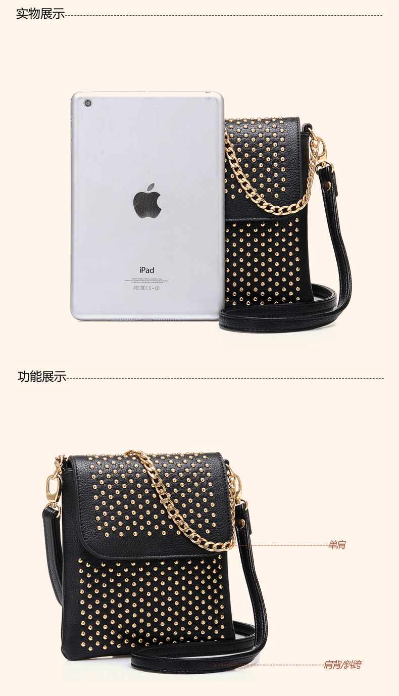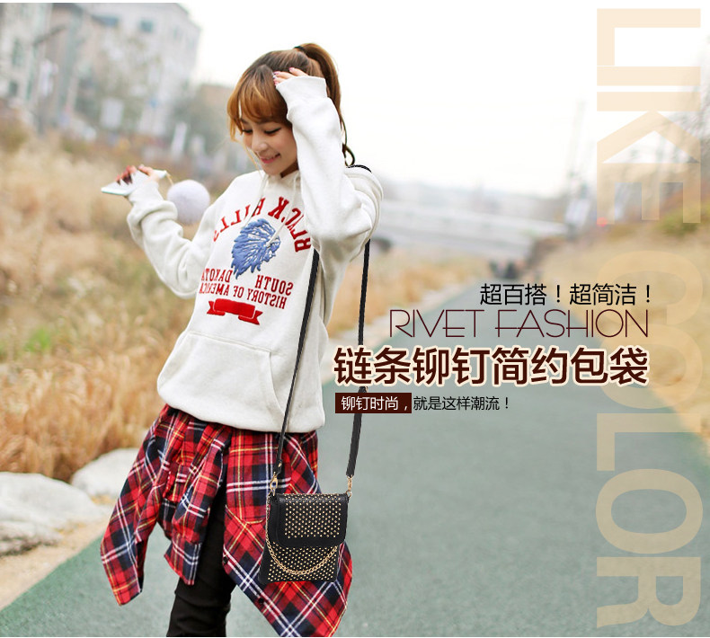 | 包包物语 | 2014韩版新款铆钉复古小包,无内部结构 1个隔层 | |||