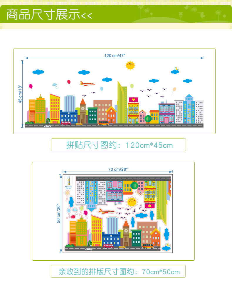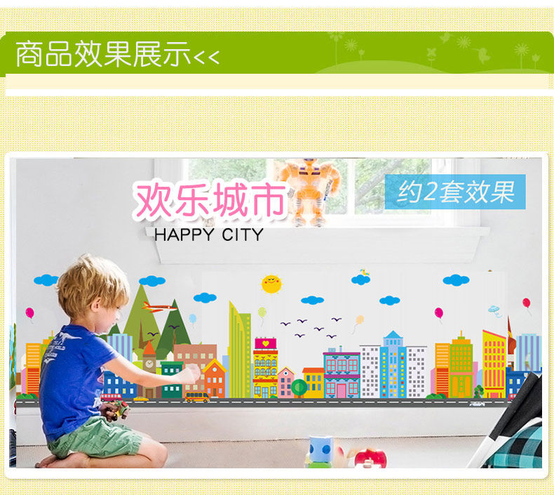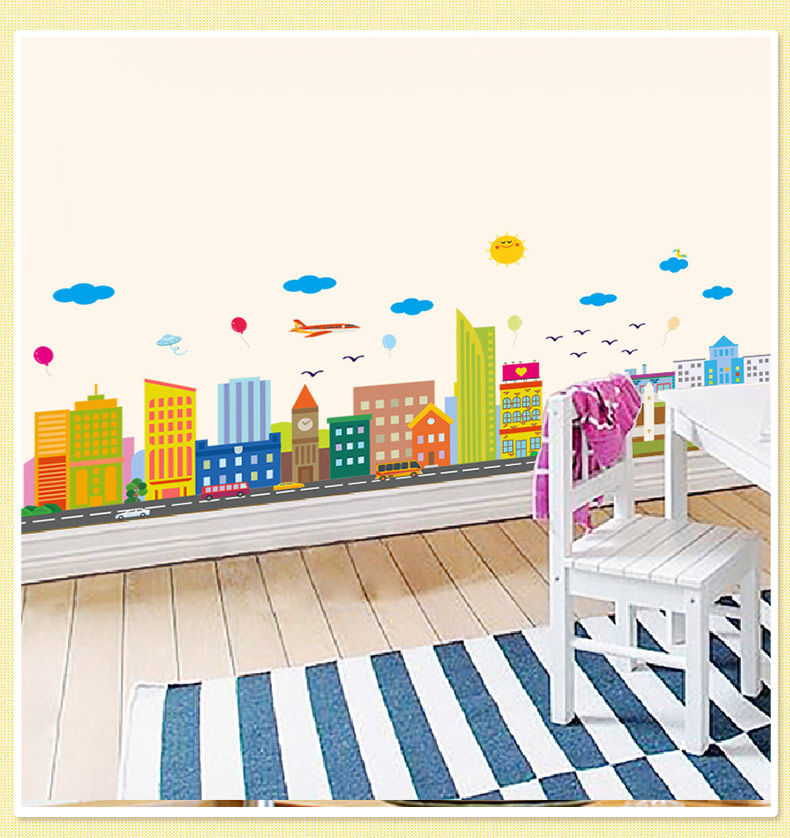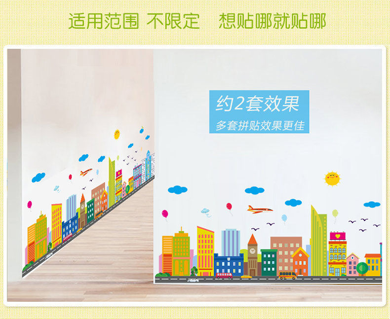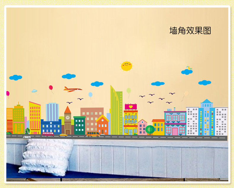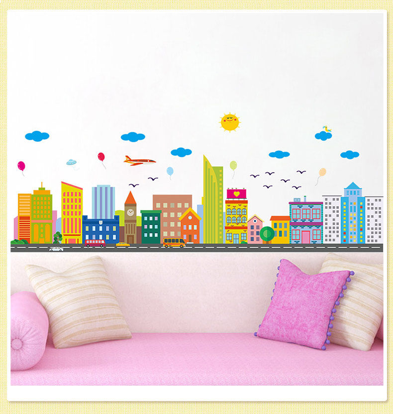 卡通城市装饰贴儿童房间卧室客厅幼儿园墙面壁纸墙贴自粘环保防水