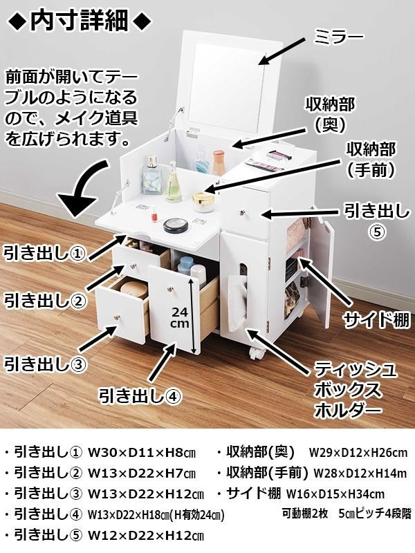 ます。 移動に便利なキャスター付きなので、お好きな場所でメイクアップが可能です。