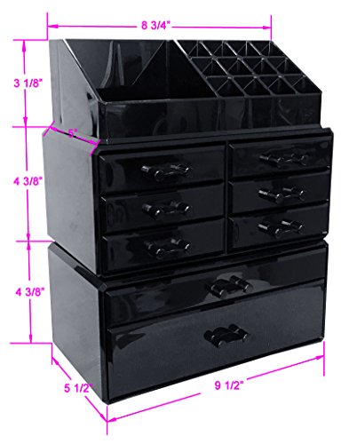 Approximate Makeup Cosmetic Organizer Set Dimension: 8 5/8''L x 5 3/8''W x 11 5/8'' H; 16 multi-size sections on the top and bottom 8 drawers: 6 small drawer, 2 large drawer.