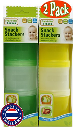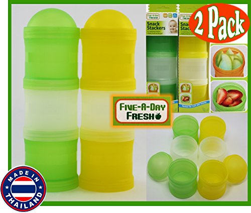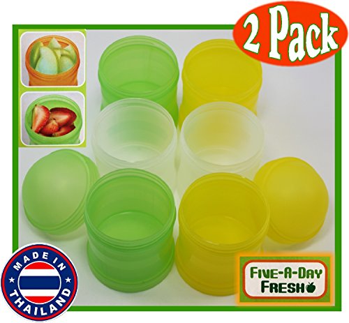Set Includes 2 Five-A-Day Fresh On-the-Go Snack Stackers (Food Storage Containers), in Green & Yellow!