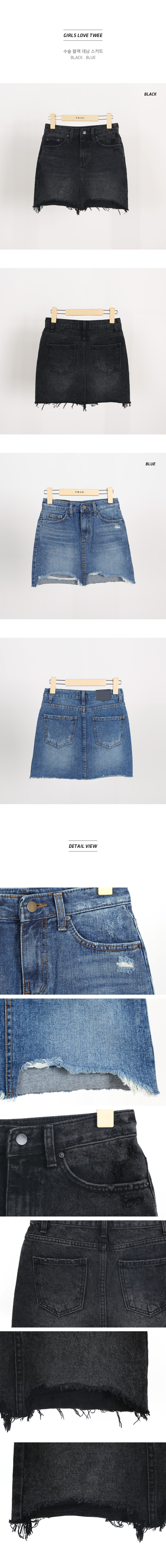 수술 블랙 데님 스커트