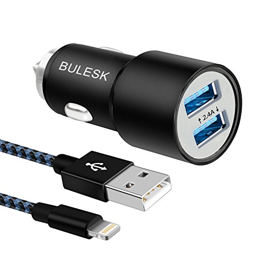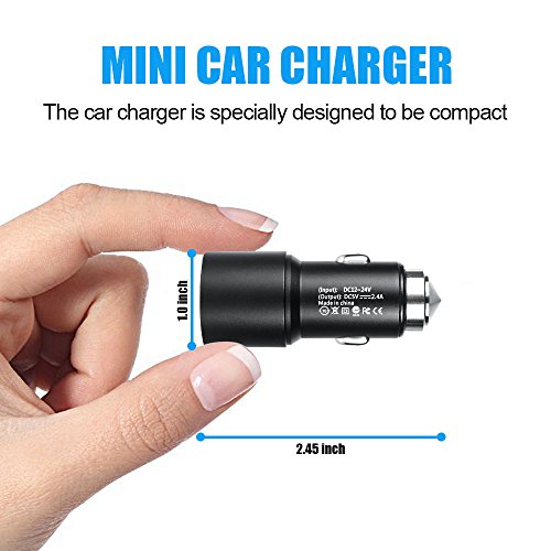 Color:Black Blue Rapid Dual Port USB Car Adapter works perfectly for any Apple iOS mobile devices and offers you great convenience! Fast Charge: High-quality four-core copper wires enhance speed of charging data transfer of the cables. Our advanced technology ensures a faster charging time while keeping your device completely safe. Unique Design: Compact, small and lightweight features for added portability, easily fits in socket. Not only a car charger, but also a safety window hammer for escape by the accident.? Specification: Input: DC 12-24V Output(port1): DC 5V, 2.4A Output(port2): DC 5V, 2.4A Max? Output:? 24W,? 4.8A Package Includes: 1 X USB Car Charger 1 X Nylon Braided Lightning Charging Cord Service and Warranty: Your satisfaction is our highest priority. Please feel free to contact us with any questions regarding our products and shipping.