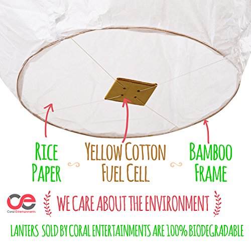 Celebrate The Holidays Or Events With A Unique Lantern From Coral Entertainments. Whether You're Celebrating A Birthday, Wedding, Valentine's Day Or Just The Start Of Summer Vacation, Nothing Quite Sets The Reflective Mood Like A Paper Lantern. Watching Them Soar High Above The Clouds Is A Fun, Relaxing And Calming Opportunity To Share Unique Moments With Friends, Family, And Those You Love. We've Crafted The Coral Entertainments Paper Lanterns With Ecofriendly Fuel, Rice Paper, A Bamboo Ring, And Metal Wire So We Can Keep It Durable, Yet Environmentally Friendly. If You're Looking To Share A Long-standing Eastern Tradition With Your Friends And Family, Then Choose The Coral Entertainments Paper Lantern And See How High You Can Get Yours! Features And Benefits: ? 10 Beautiful White Lanterns In Each Pack ? Super Size: 36*18*18 Inch ? Instructions In Every Package ? Draw, Write And Make A Wish Into The Sky With Our Lanterns ? Strong Rice Paper That Won't Tear In Your Hands Like Other Lanterns ? Bamboo Ring ? 100% Environmentally-Friendly Yellow Cotton Fuel Make Your Next Evening Get Together One You'll Never Forget By Clicking "add To Cart" Above! Don't Forget To Make A Wish ! 0 |