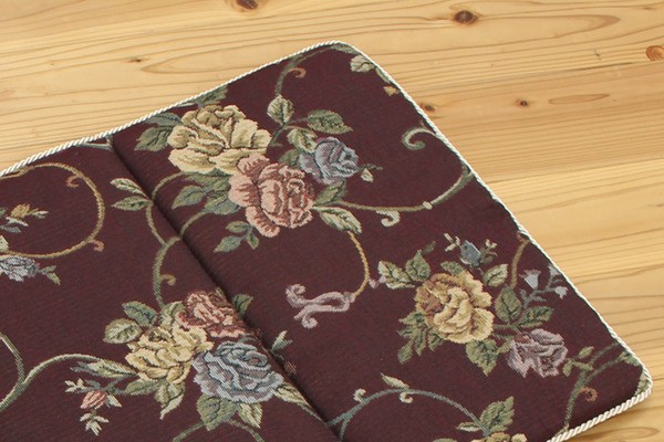 エレガンス柄のクッションです。人気の柄で洋室にもぴったりの商品です。表地にはジャガード織の生地を使用しているため上品な風合いのある商品です。